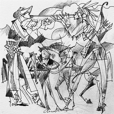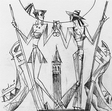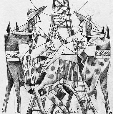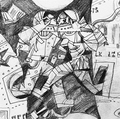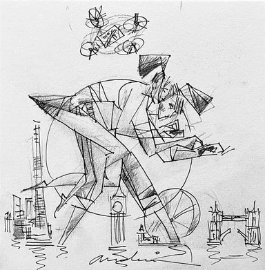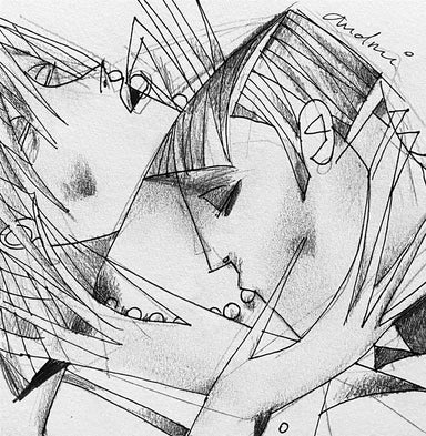 In 1994 Andrei Protsouk moved with his family to the US, where he quickly established himself as a prominent figure on the contemporary art scene. His paintings became more colourful; his subjects more joyful, celebrating life in the freedom of American society. Many of his artworks now centre around the universal theme of love, frequently depicting couples in the midst of passionate dances or embraces. Unafraid to work to large scales, Andrei Protsouk's elaborate pieces burst with vibrant colours, intricate shapes and varied textures. His use of constructive line demonstrates his innate creative ability and understanding of the human form, drawing comparisons to the figurative works of Michaelangelo.