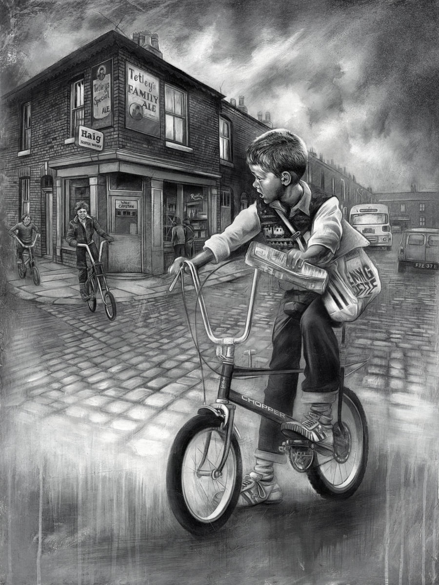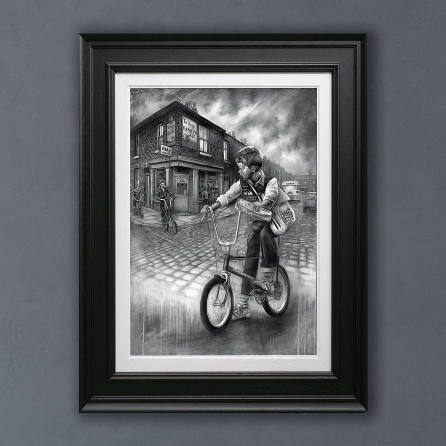 Zoom icon Click to expand Tap to zoom Chevron down icon Chevron down icon Craig Everett - 'The Paper Round'- Framed Limited Edition £595.00 | / Framed Limited Edition - £595.00 Framed Limited Edition Print Type Chevron down icon 1 2 3 4 5 6 7 8 9 10+ Quantity Chevron down icon Quantity Add to cart Spinner icon This item is a recurring or deferred purchase. By continuing, I agree to the cancellation policy and authorize you to charge my payment method at the prices, frequency and dates listed on this page until my order is fulfilled or I cancel, if permitted. Interested in similar artwork or a commission? Send us your email for more information... Email address Send Framed Giclee On Canvas. Edition Size 50 Image Size: 51 x 68cm. Framed Size 76 X 93cm Signed by the artist and includes a full Certificate of Authenticity FREE UK DELIVERY (estimated 5-14 working days for UK orders and 7-21 working days for outside the UK) . Click here for international delivery costs *All prices include VAT* Call us on +44 (0)208 399 9881 ASK US A QUESTION ABOUT CRAIG EVERETT 1.0.0.20 1.0.0.20